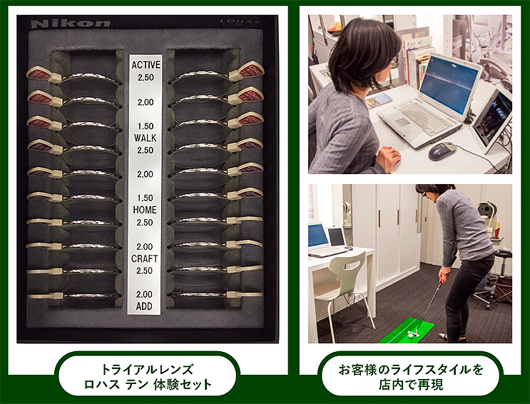 そしてニコン・エシロール『ロハステン』は、眼鏡店に「トライアルレンズ」を用意し、店頭で実際に各レンズを試しながら、自分にぴったりのレンズを選べる。