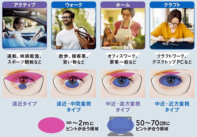 まず「ライフスタイルにあわせて4つのレンズタイプから選べる」というポイント。