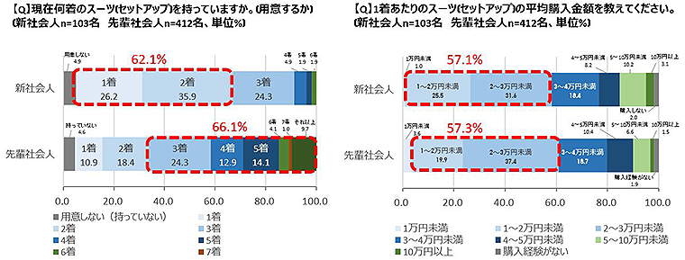 さらに、ビジネスウェア選びのポイントについては、新社会人は「動きやすさ」、先輩社会人は「コストパフォーマンス」が1位に。