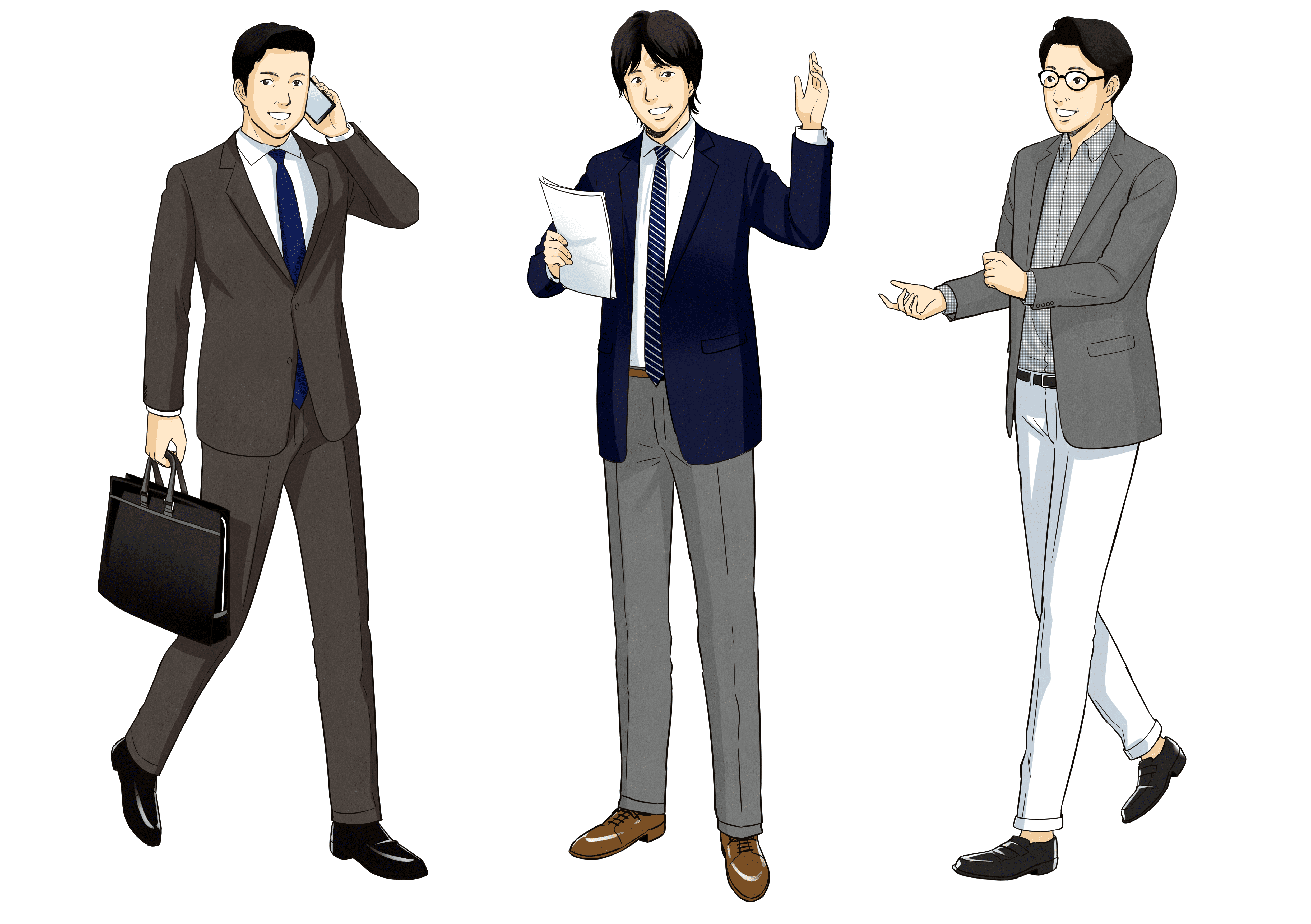 ふたつめは「ジャストサイズ」。「サイズがあわず、ボトムスの丈が長く、クッションができ過ぎている残念なスーツ姿の人も街で見かける。ジャストサイズのアイテムを着用するだけで、印象もよくなる。アイテムを選ぶときは、試着してサイズ感をしっかりとあわせて選んで」とも。