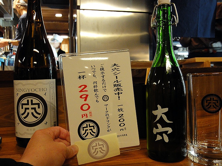 ここでは、特定の酒類が「いつでも何杯飲んでも1杯290円」という大穴シールを200円で販売中。