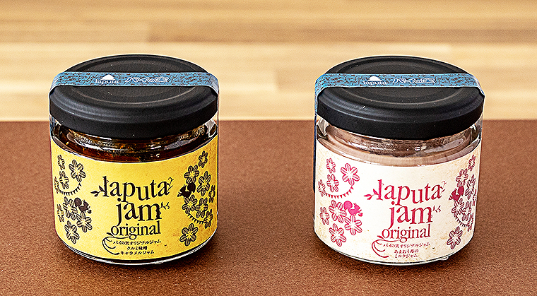 オリジナルジャム2種類は、ラピュタファームが製造したオリジナルのイチゴジャムとくるみ味噌ジャム。