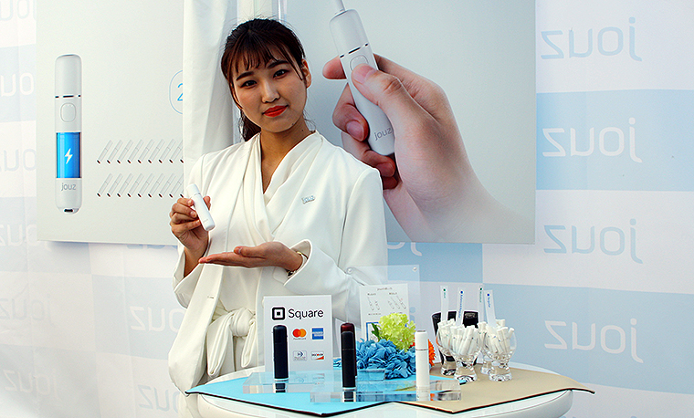 この IQOS 互換性タイプの加熱式たばこデバイス jouz は、ECサイトのみで販売されているなか、SUPER GT のレース現場でこうしたリアルなブースで購入できることに。