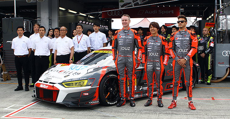 またジョウズ・ジャパンは、Audi Team Hitotsuyama のスポンサーも契約。Hitotsuyama Audi R8 LMS マシンには、前後左右や、ライバーの R.ライアン/富田竜一郎/A.ピカリエロ のドライバースーツにも jouz のエンブレムが入った。