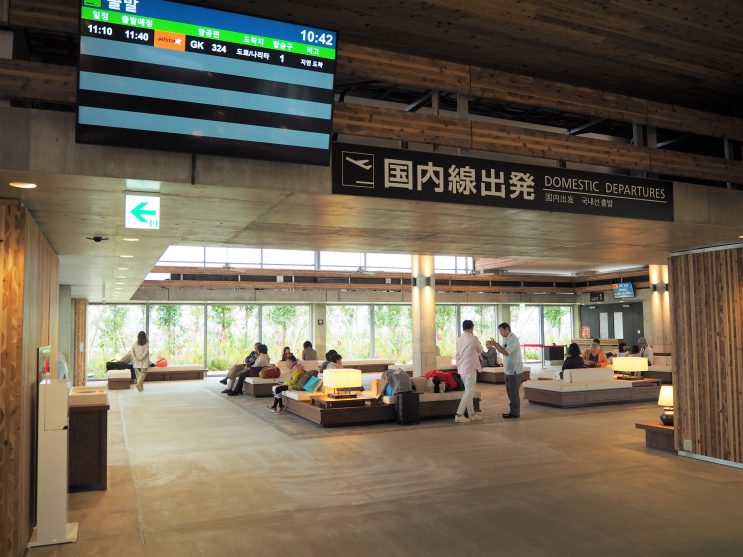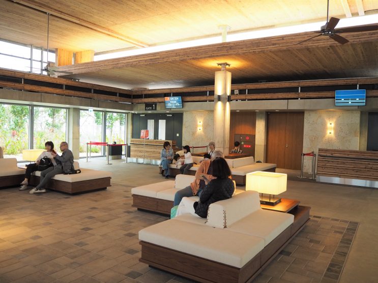 「みやこ下地島空港ターミナル」は、つい泊まってしまいたくなるようなリゾートホテルのような空間でした。空港特有の慌ただしい感じがなく、リラックスしながら快適に過ごせます。