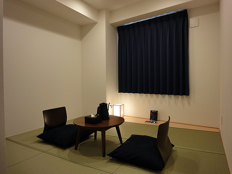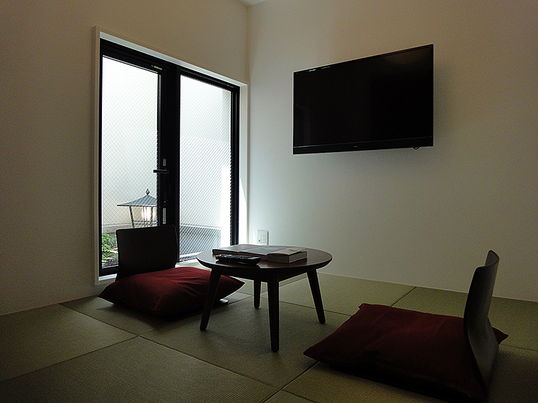 和室タイプは、昭和初期を想わせるちゃぶ台と座椅子、畳の和室を用意。