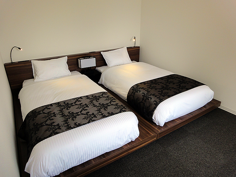 ここは、広々としたツインベッド2台と、和室が組み合わさった、最強の部屋。