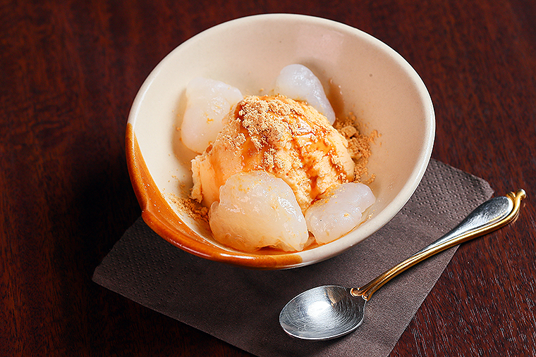 ◆美肌ぷるるんランチ(11:00~14:30L.O/いちばん上の画像)は、生芋こんにゃくの和風パスタ、白玉風こんにゃくとアイスの黒蜜かけ、サラダがセット。1600円。
