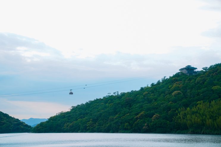 全長723.75m、高低差94.41mで乗車時間は約4分。日本で唯一湖上を空中散歩できるロープウェイです。空を舞うゴンドラからは迫力ある360度の大パノラマが見渡せます。