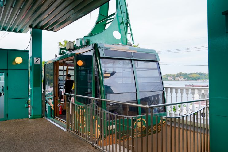 通常は昼間のみ運行していますが、ツアーでは日没前に乗車。遊園地「浜名湖パルパル」から浜名湖に浮かぶ大草山山頂へと向かいます。