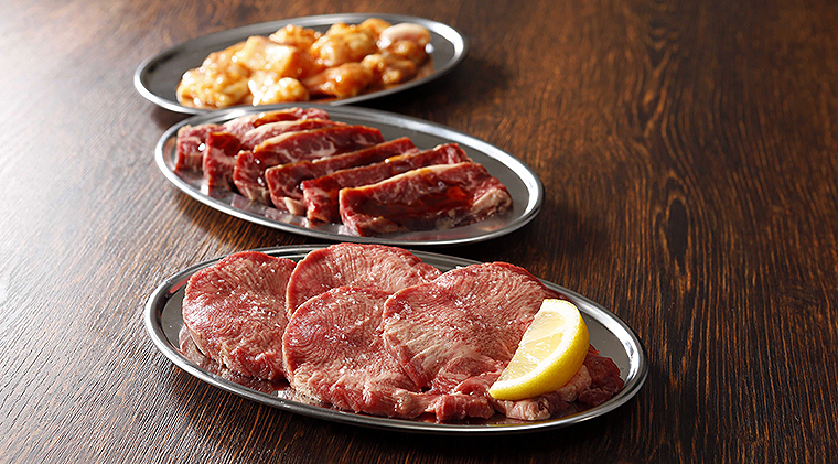 牛タン塩、ハラミ、厚切りレバー、ぷりぷりホルモン(マルチョウ)、豚カルビ(鹿児島県産南国スイート)、トントロ(鹿児島県産南国スイート)
