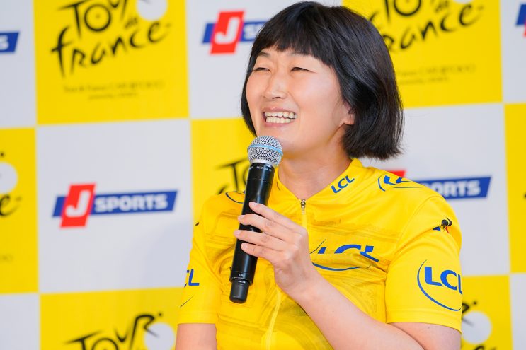 キックオフイベントには、モデルのNikiさん、お笑いコンビ「たんぽぽ」の川村エミコさんが登壇。「J SPORTS」サイクルロードレース中継の実況を担当されているサッシャさんの進行によりトークショーも開催されました。