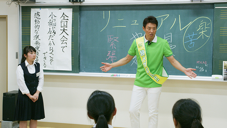 いかも松岡修造が今回、猛烈コーチングするのは文化系。東京から220km離れた、長野県上伊那郡辰野町の辰野中学校マーチングバンド部。しかも超メガ応援!