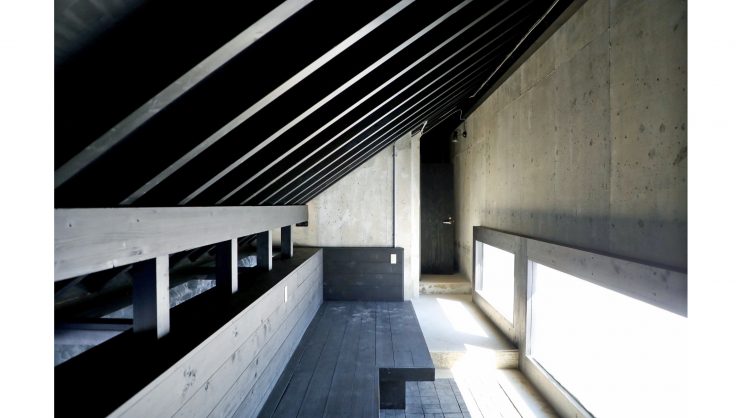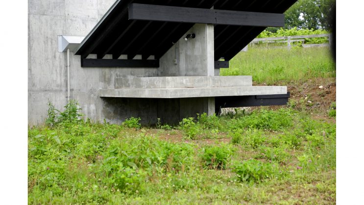 “Inverted House”は地面の上に水平に広がる建築として設計されており、このコンセプトをより明確なものとするために、周辺の地面を切り開き、水平な地盤をつくっています。建築は周辺を取り囲む柵に対し角度を持って配置されることで、敷地境界からも切り離されます。