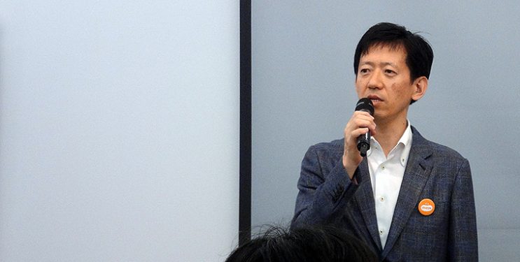 ―――画像は7月25日に行われた記者発表会のようす。大日本印刷 蟇田栄専務、同 事業企画本部 浜崎克敏 部長、同 サービスデザイン・ラボ 松尾佳菜子 開発担当、新宿区 関原陽子 福祉部長 らが登壇した。