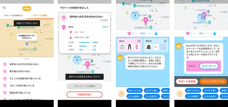 またインターフェースも進化。アプリ上の地図に「移動に困り、手助けを求める人」(リクエスター)と「手助けしたい人」(サポーター)の所在地が表示され、互いの移動状況が直感的にわかる。