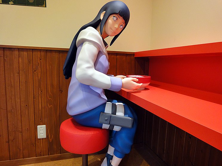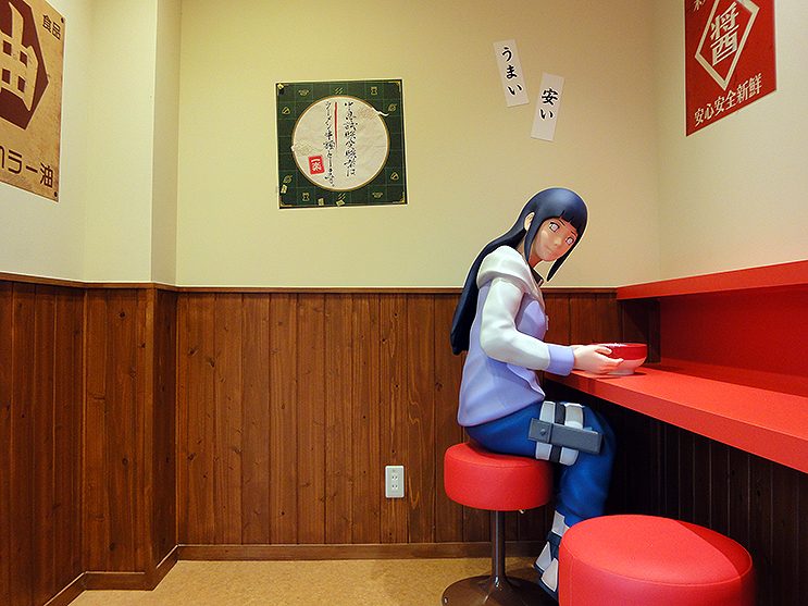 すごいでしょ。ヒナタがカウンターに座ってるんだよ! ナルトになった気分で、一楽のラーメンを実食できて、疑似体験できるとか。最高でしょ。