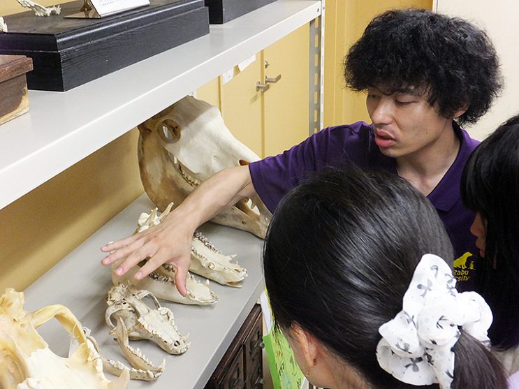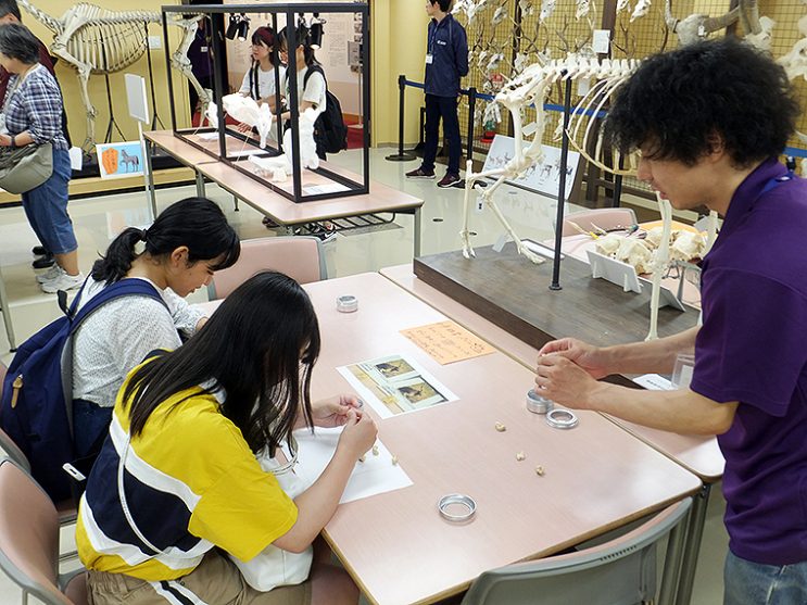 8月3・4日に開催されたオープンキャンパスでは、約70人の1年生が解説を担当。麻布大学「いのちの博物館」で、彼らが来場者に解説しながらいっしょに学び、所蔵する動物標本や歴史資料、研究内容を共有。