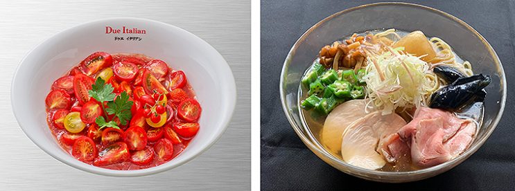 ・黄金の塩らぁめん「ドゥエイタリアン」:冷製トマトコレクション2019 1,400円 (左上画像)