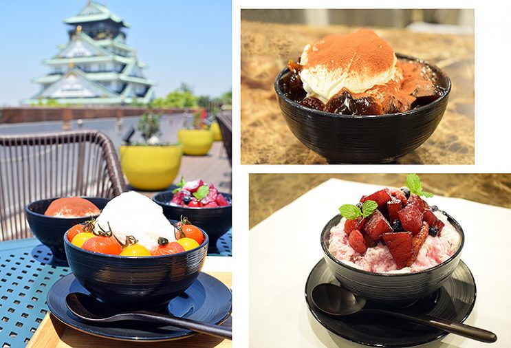 大阪城をながめながら、キーンと冷たいかき氷を、その食感を楽しんで。