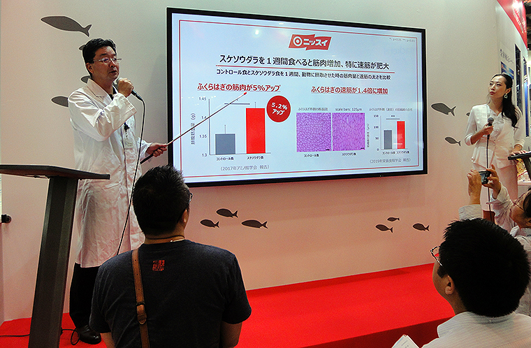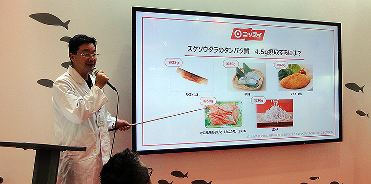 日本水産(ニッスイ)食品機能科学研究所 内田健志研究員によると、「スケソウダラタンパク質4.5gを週4日ほど摂ることで、65歳以上の高齢者でも筋肉の増加が確認できた」というからびっくり。