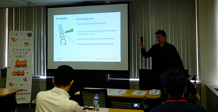 グローバルIT業界団体としてシカゴで設立し、ITプロフェッショナルのコミュニティを運営するCompTIA(コンプティア)は、きょう8月28日に説明会を開き、CompTIA トッド・ティビドーCEO(Todd Thibodeaux President and CEO)、ジェームス・スタンガー博士(James Stanger PhD)らが登壇。IT業界が直面する課題、ITセキュリティ人材不足の現況と対策などについて伝えた。
