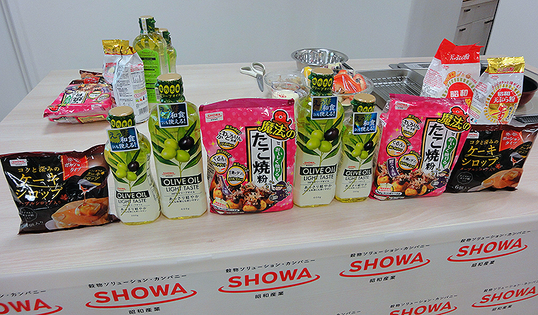 今回の新商品は「オリーブオイルライトテイスト」「コクと深みのケーキシロップ」「おいしく焼ける魔法のたこ焼粉」の3発。