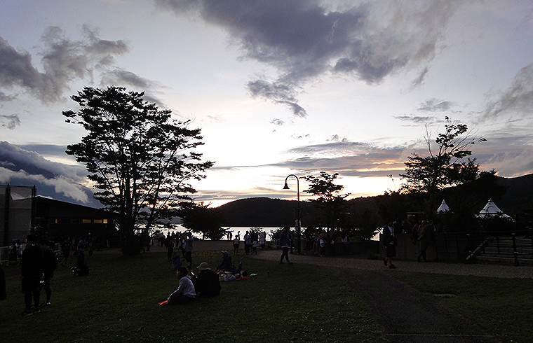 初日の空は、富士山麓ならではの、変わりやすい天気。午後からは青空がみえはじめ、刻々と変わる空へむけて、みんなが手をあげてアーティストのパフォーマンスと一体になってたよーっ。