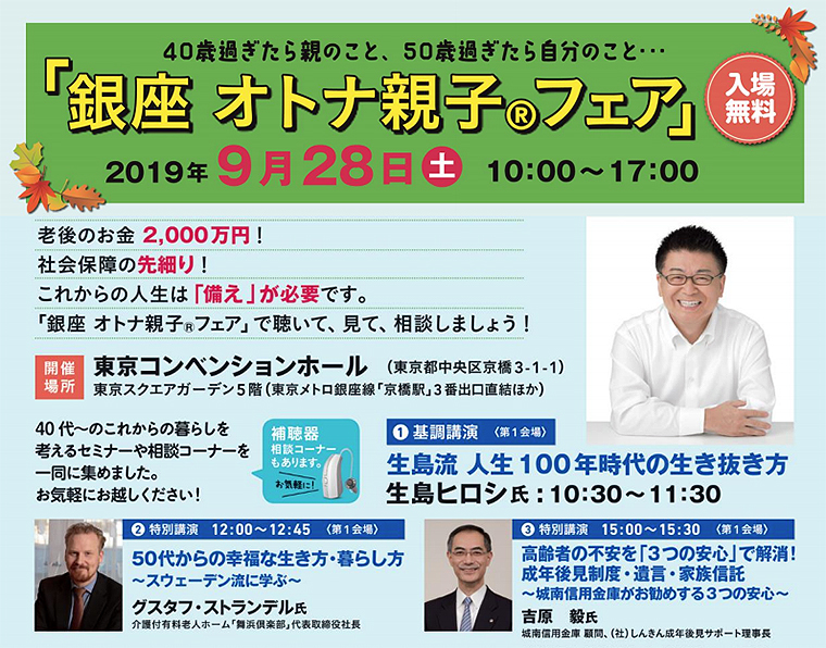 題して「銀座オトナ親子フェア」。40代以上のこれからの暮らしを考えるセミナーや相談コーナーがいろいろ集まったイベントで、入場は無料。