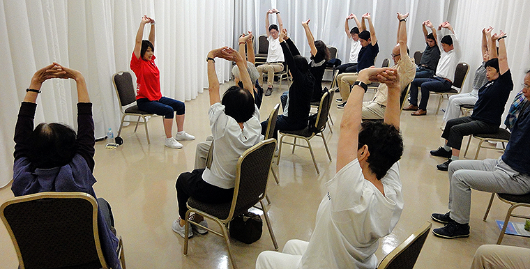 9月23日 秋分の日、東京・品川でスローエアロビック体験会が開催され、武蔵小山駅周辺のシニアたちが、初めてスローエアロビックというエクササイズにトライした。