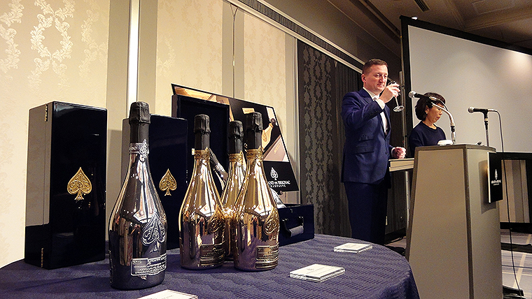 10月、東京・紀尾井町のホテルニューオータニで開かれた「ブリュット スペシャル エディション ジャパン 2020」発表会には、この日のために来日したアルマン・ド・ブリニャック Sebastien Besson 社長が登壇。「アルマン・ド・ブリニャックは、いまに満足することなく、常に美味しさを求め、妥協のないシャンパンづくりをフィロソフィーとしている」と伝えた。