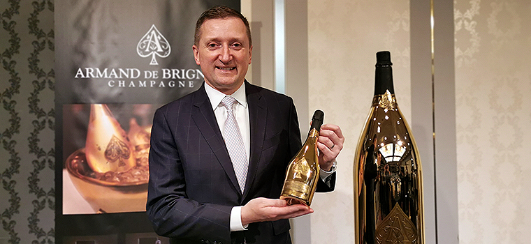 「日本は最も大事にしているマーケット。一番の客ともいえる。ブリュット スペシャル エディション ジャパン 2020 が日本に届くのは2020年1月。3か月後を想像しながら、いまある アルマン・ド・ブリニャック を味わってみてほしい」(Sebastien Besson 社長)
