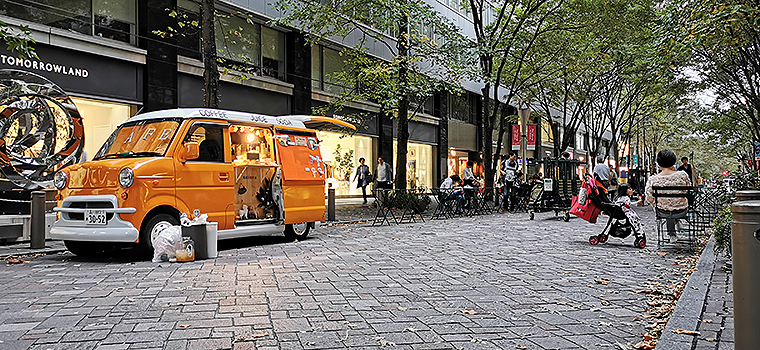 また2枚目の画像は、キッチンカーの脇を行き交う人たちが流れて映っている。これは、HUAWEI AI 手振れ補正機能が作用し、手持ちで長時間露光した結果。薄暗い環境でも三脚などの固定ツールを使うことなく、止めたいところはくっきり鮮やかに、動いてるところはうまく流れる……そんな画が描ける。
