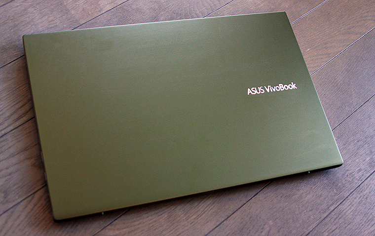 天板に施されている「ASUS VivoBook」ロゴは一体型で、カラーが施されたあとにシルバーを削り落とす工法を採用したことで、取れ落ちることもなく、美しい光沢を放つつくりに。