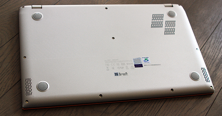 さらに、このエルゴ リフトで底面後方に適度なすき間が生まれ、底面に配置された通気孔からの放熱性能が高まるといったメリットも生まれ、長時間の作業でも熱によるパフォーマンス低下を軽減させている。