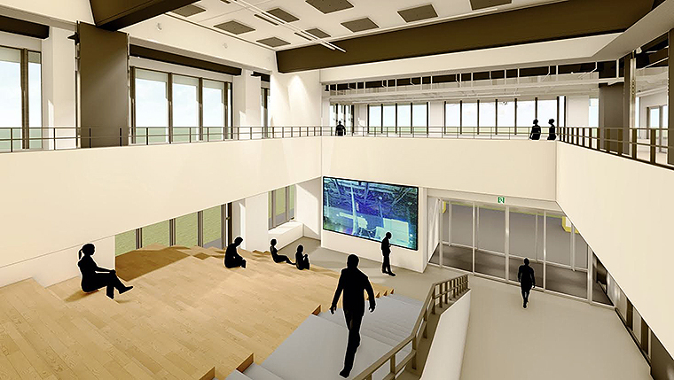 さらに、エントランスから続く「プレゼンテーションステップス」は、通路であるとともに多くの人たちの目に触れる作品発表の場ともなるという。