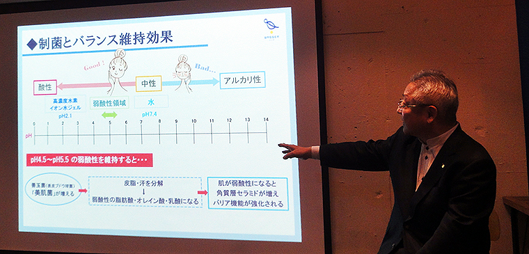「EGF上皮細胞(表皮)増殖因子やFGF線維芽細胞(真皮)増殖因子などを備え、歯槽膿漏や口内炎、火傷(やけど)、傷、炎症、さらにアトピーについても効果が期待できることを確認している」(佐々木代表)