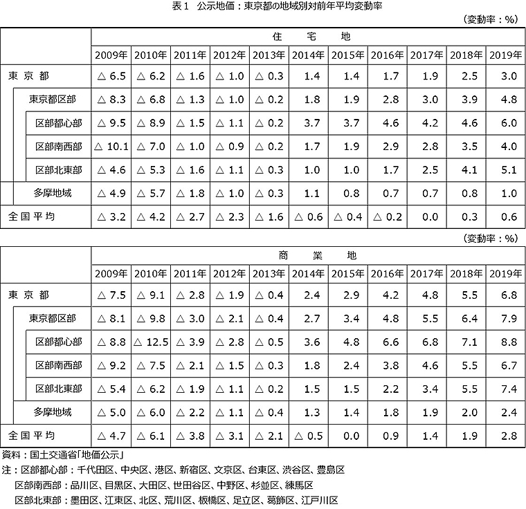 また近年の区部北東部や臨海部の地価の上昇は、東京スカイツリータウン開業、大学移転などにともなう北千住エリアの都市開発、オリンピック関連施設の建設などで、改めて注目された結果といえる。