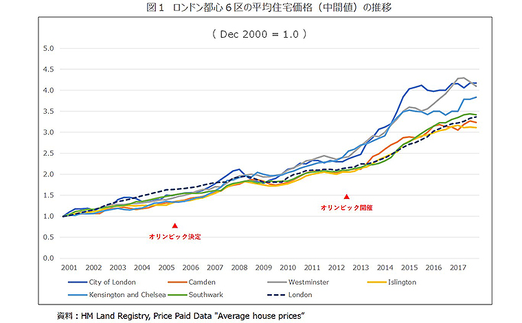 ロンドン五輪開催後の各区の不動産価格をみると、区によってもばらつきがあるなか、ロンドンの都心6区は上昇している。