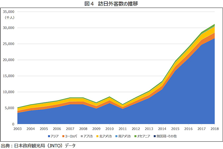 海外からの訪日外客数はオリンピック以降も堅調に増加すると政府は予測している。