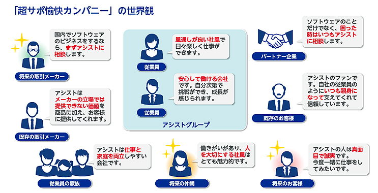 「顧客との関係強化・フォロー体制を拡充させるべく、BtoB ではなく「PtoP」という姿勢で取り組みたい。Person to Person。顧客担当者とアシスト社員ひとりひひとりが関係性を構築し、それが束になって BtoB につながっていく」