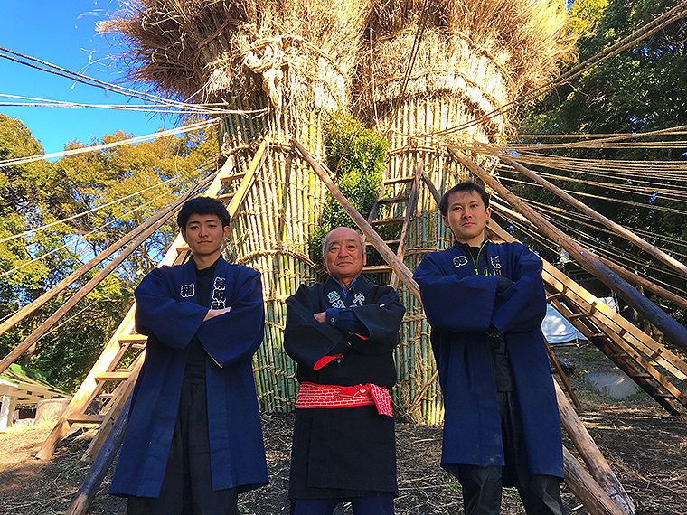 「約1200年前に始まったとされる『鳥羽の火祭り』は、国の重要無形民俗文化財に指定されている。伝統あるお祭りを絶やすことなく、今後も守り続けていきたい」と語るのは、鳥羽火祭り保存会会長の鈴木昌弘さん(写真中央)。