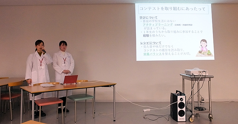 次回コンテストも、さらにブラッシュアップさせたメニューで挑みたいと意気込むふたり。全国でもめずらしい調理学実習室の前で、今後についてこう語っていた。