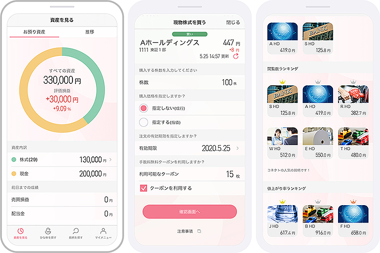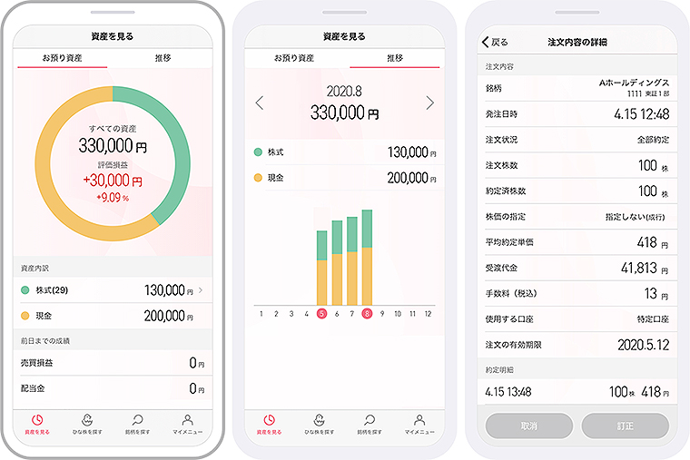 口座開設も取引もスマホで完結、みやすさにこだわった画面構成
