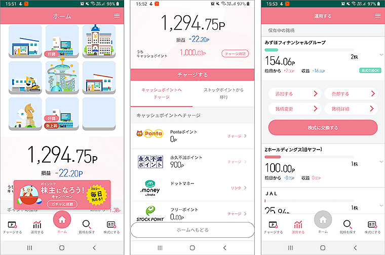 また、CONNECT と提携する各種ポイントを、株式投資に投入できるサービスも CONNECT 内で展開。証券口座を開設すると、運用したポイントを本物の株式に交換できるという“楽しみ”も採り入れた。