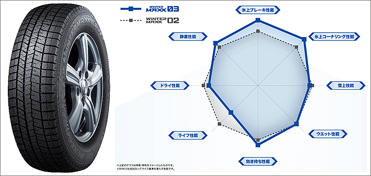 ダンロップ(住友ゴム工業)が8月1日から発売する最新スタッドレスタイヤ「WINTER MAXX 03」(ウインター マックス ゼロスリー)に注目。