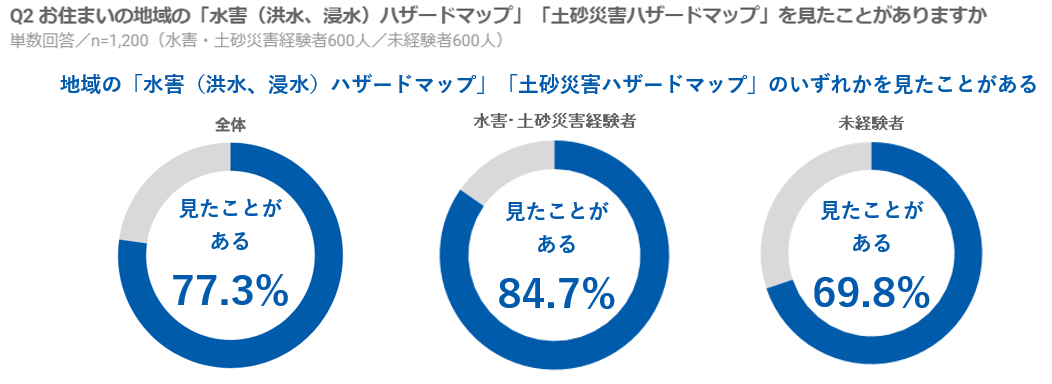 まず、全体の約8割はハザードマップを「見たことがある」と回答。
