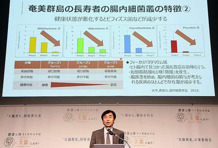 また、岡山大学大学院 環境生命科学研究所 森田英利 教授は、「長寿と腸内環境の関係」をテーマに特別講演を行った。