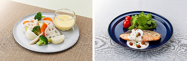 魚の中でもサーモンは、日本人に足りないビタミンD 含有量がトップクラス。同じ発酵食品の味噌とコラボしたソースは味噌の塩分、旨味が活きる。