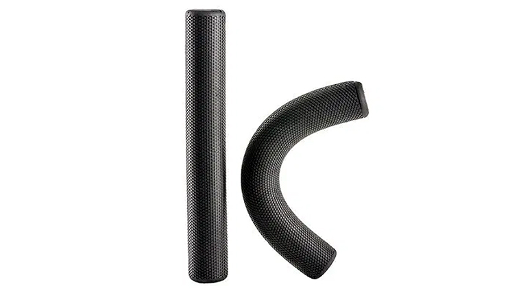 その独自設計は、触った瞬間にわかる。それは、一般的なストレッチポールとは決定的に違う、絶妙の柔らかさ。↑↑↑画像のように、ぐにゃっと曲がるほど柔らかい。